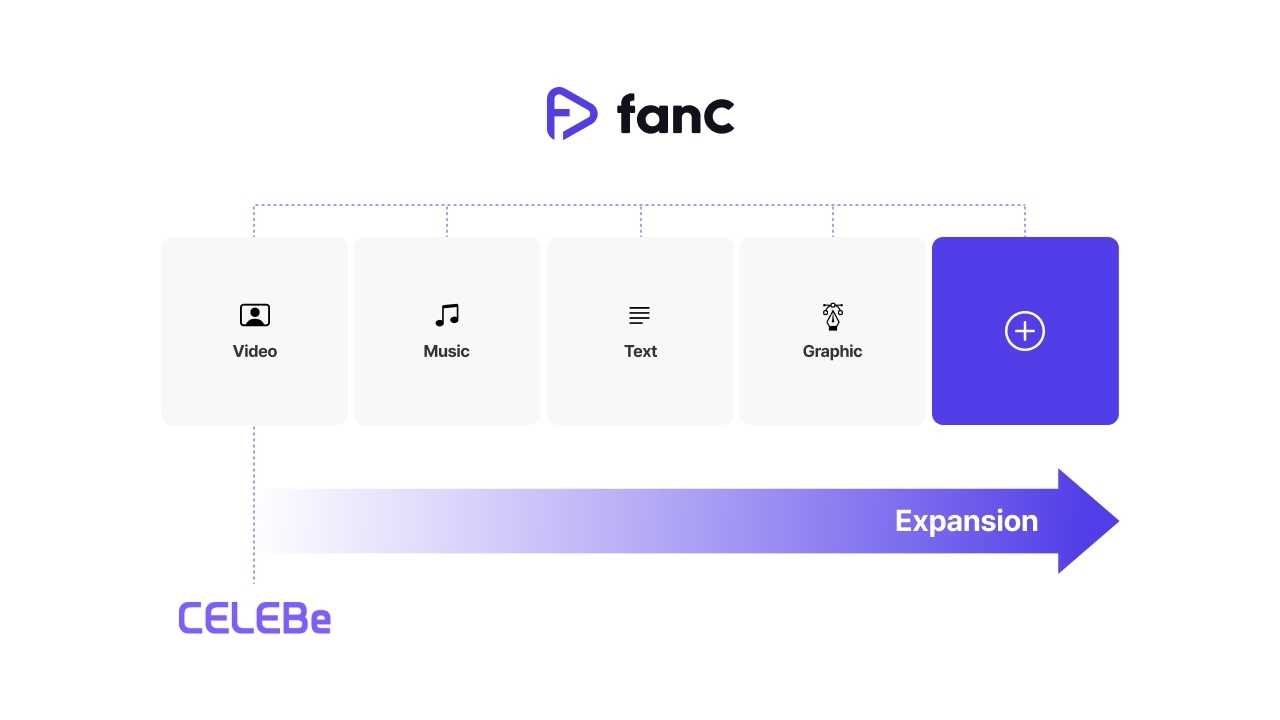 fanC 생태계 안에서는 Media, Text, Music, Photo 기반 다양한 소셜 플랫폼들이 연결됩니다. 이러한 연결은 소셜 플랫폼 간의 연합을 조성하며, fanC를 Reward로 사용하는 것에 대한 조건으로 '연결된 광고'를 수행합니다.